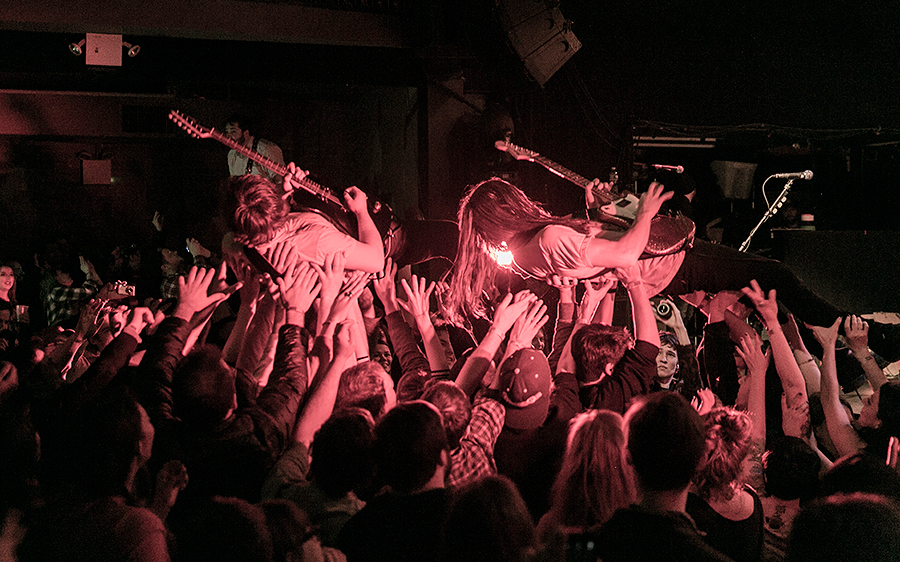 Unfortunately, the same got-their-shit-together-ness can’t be said for large portions of the crowd, who’s “moshing” and “stage diving” so deserve the ironic quotes. It was more like stage-lower-yourelf-slowly-into-the-crowd-ing. Seriously, it was kind of pathetic. And pathetic on both divers and the crowd tasked with catching the divers. The best dive of the night came from, unsurprisingly, one of the guitarists of DP. The heaviest one. He took a huge leap of the stage, and was barely saved from hitting the floor by the shocked crowd beneath him. And I mean “beneath” him as in physically below him as well as that they were not even worthy of catching such a magnificent rock showman. Diarrhea Planet are on their own world right now as far as live bands go, and everything in orbit can barely keep up.